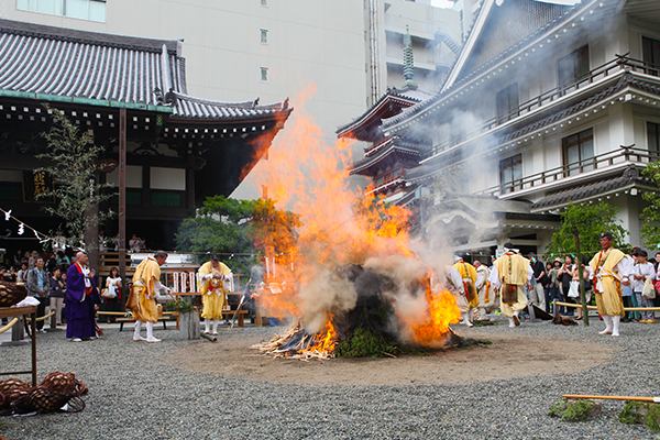 境内に壇を組み、一願不動尊護摩祈祷をします。正午過ぎより山伏の行列が太融寺周辺をお練りし、境内で無病息災、商売繁盛、身体健全などを祈願いたします。