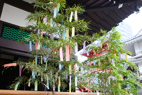 6月下旬より御供所にて五色の七夕短冊を準備しておりますので、ご随意にお願いごとをお書きください。当日は本堂前に大笹を設け、15:00 よりご祈願いたします。